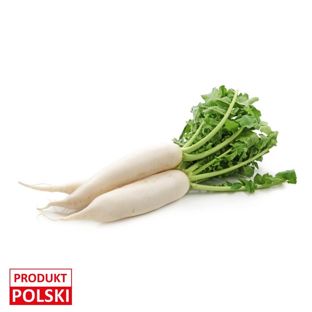 Rzodkiew biała, znana również jako daikon, ma delikatny, biały miąższ i białą skórkę. Jest bogata w witaminę C, potas, błonnik i inne składniki odżywcze. Rzodkiew biała może być spożywana na surowo jako przekąska, dodatek do sałatek, kanapek i innych dań, a także używana do dekoracji potraw. W kuchni azjatyckiej często dodawana jest do zup, makaronów i dań stir-fry.